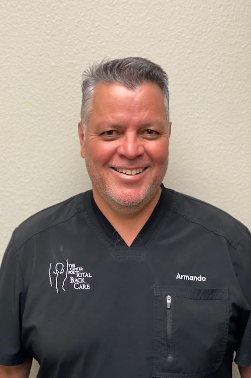Armando serves as a rehabilitation specialist for The Center for Total Back Care and is a Certified MedX Technician. He has over 20 years of experience working with patients on the Med-X and VAX-D. He enjoys helping patients get back to their normal active lifestyle.